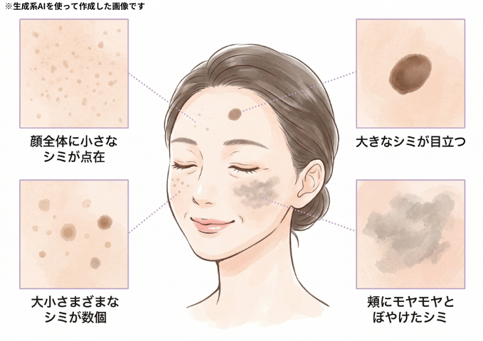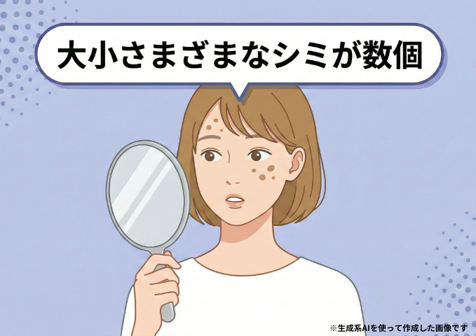 「シミ」と一言で言っても、深さや範囲、個数は人それぞれ。