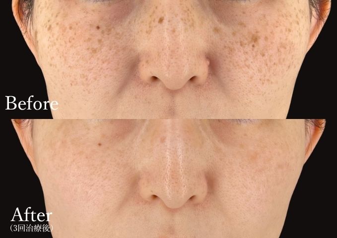 「シミ取り放題」コースでの治療が可能です。当院のIPLシミ治療で最も効果を感じやすいのはこのシミの種類ですね。