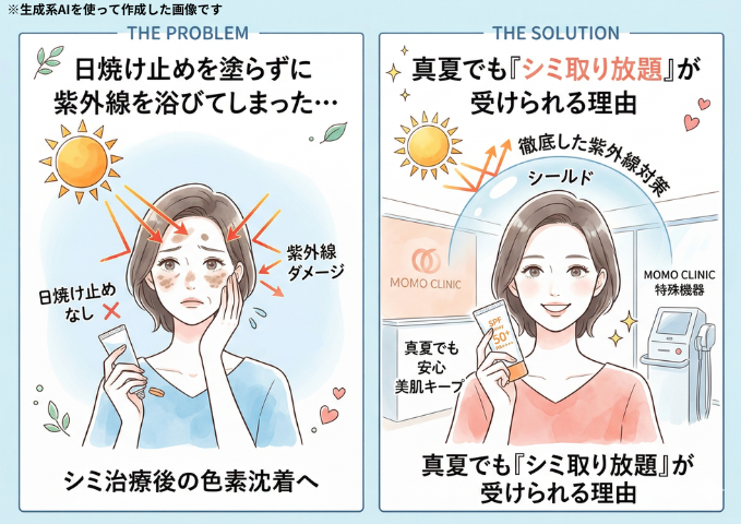 夏こそモモクリでシミ取りを。諦めていたそのシミを、この夏一緒に治しませんか?