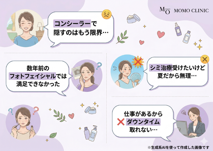 MOMO CLINICでは肝斑があってもシミ治療は可能ですので、お気軽にご相談ください。