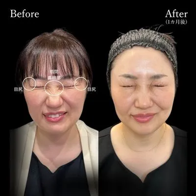 目尻のシワ、眉間のシワ、鼻根部のシワをボトックスで解消♩シワが目立たなくなるだけでお肌のハリつやがアップし、かなり若々しくなりました。