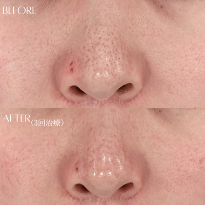 毛穴の「開き」「たるみ」にサヨナラ。ジュベルック治療の結果として、毛穴の開き改善、毛穴のたるみ改善、肌のツヤ感UP、化粧ノリUPといった効果が得られました。