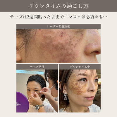 ダウンタイムが生じる施術なので、施術後2週間はテープを貼ったままでお過ごしいただきます。施術中の痛みは、「我慢できるレベルではあるけど痛い」とのことでした。