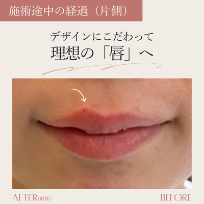片側だけヒアルを入れた写真です。左右比較すると、「M字」の山が綺麗に作れていることが分かります♩デザインにこだわって理想の「唇」へ。