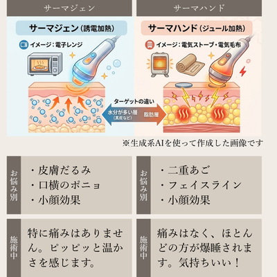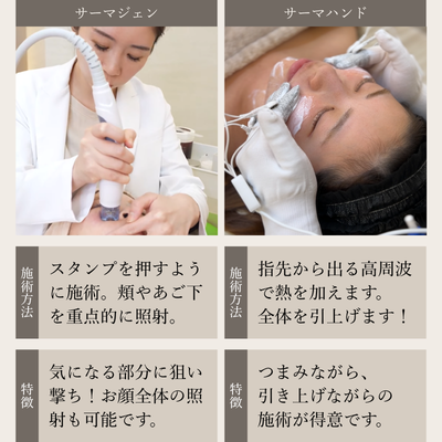 サーマハンドとサーマジェンの違いを解説。同じ医療機器を使って行う施術ですが、効果や目的が違います。
