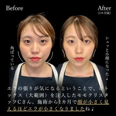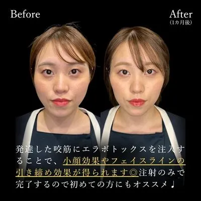 発達した咬筋にエラボトックスを注入することで、小顔効果やフェイスラインの引き締め効果が得られます◎注射のみで完了するので初めての方にもオススメ♩
