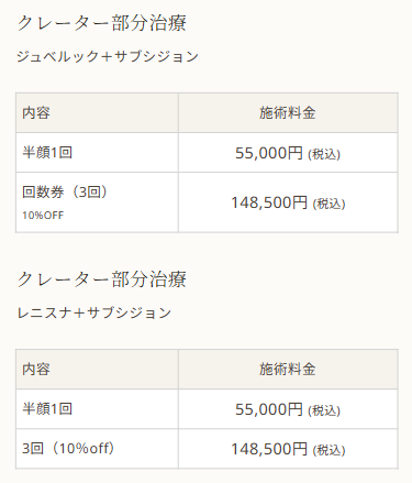 「ジュベルック」と同じメーカーが出している製剤「レニスナ」。こちらもサブシジョンと組み合わせることでニキビ跡やクレーターをより早く改善に導きます。ジュベルックと同じポリ乳酸製剤ですが、ボリューム形成力が高めなので、へこみが強いニキビ跡におすすめ◎深いクレーターや中度~重度のニキビ跡に悩む方は是非ご相談ください。