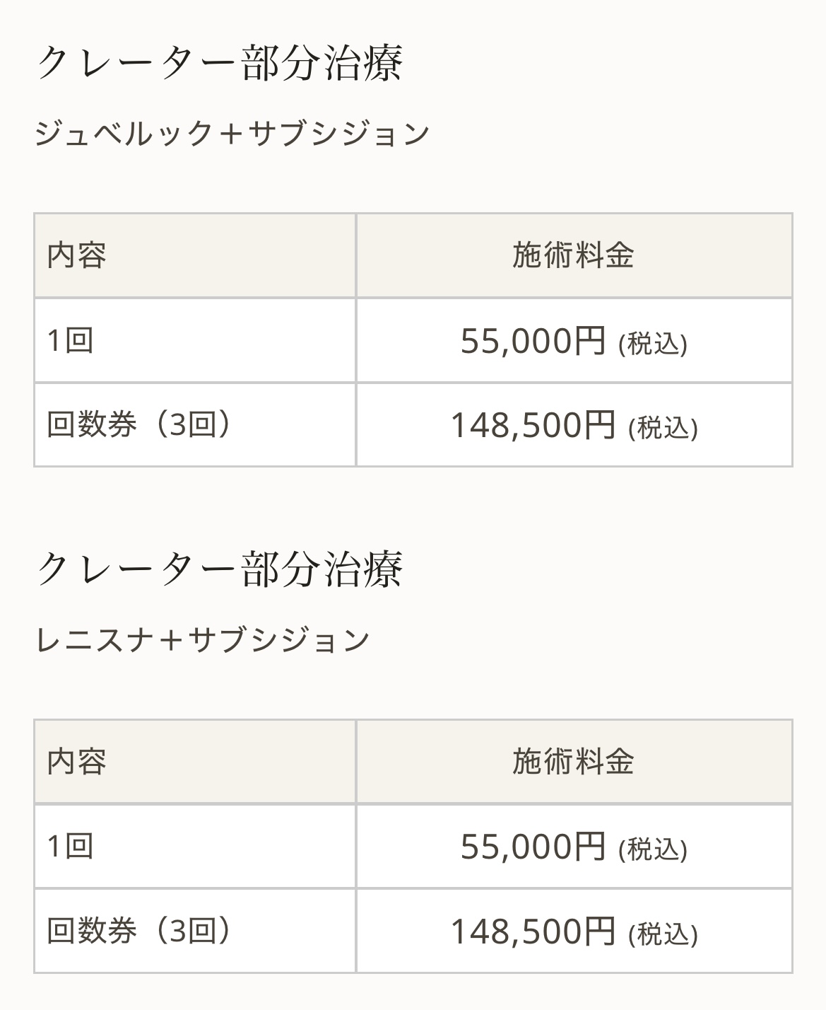 施術内容によって料金は異なります。詳しくは料金表ページをご確認いただくか、カウンセリングでご案内いたします。
