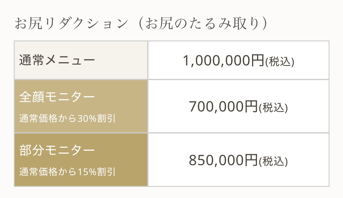 | 注意事項 | ・術後は圧迫のため1カ月程度ガードルの着用をお願いします。 ・座る動作に制限が出ます。硬い椅子を避けて長時間同じ体勢を続けないように。 ・術後は軽い歩行であれば可能です。無理はしない。 ・激しい運動は1カ月程度控えてください。 ・シャワー:翌日から可能。創部に水がかからないように注意してください。 |