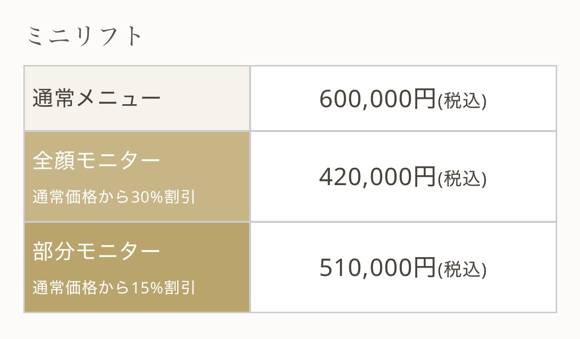 | リスク・副作用 | 左右差、腫れ、内出血、傷、感染症、感覚鈍麻、顔面神経麻痺、ケロイド、瘢痕化、アレルギー反応 |
