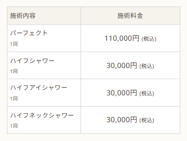 施術内容によって料金は異なります。詳しくは料金表ページをご確認いただくか、カウンセリングでご案内いたします。