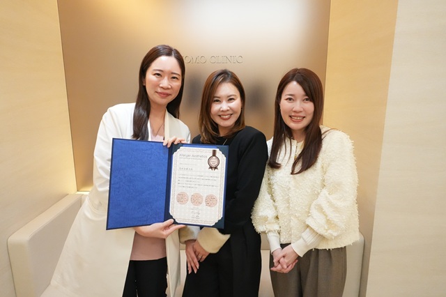 MOMO CLINICでは、厚生労働省に承認されたアラガン社のヒアルロン酸製剤を使用しています。開院から1年間でヒアルロン酸施術の実績を積み上げたことで、先日、アラガン社様から感謝状をいただきました。今後とも誠実に丁寧に美容医療に向き合ってまいります。