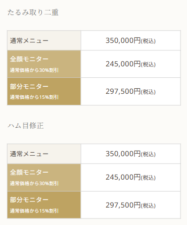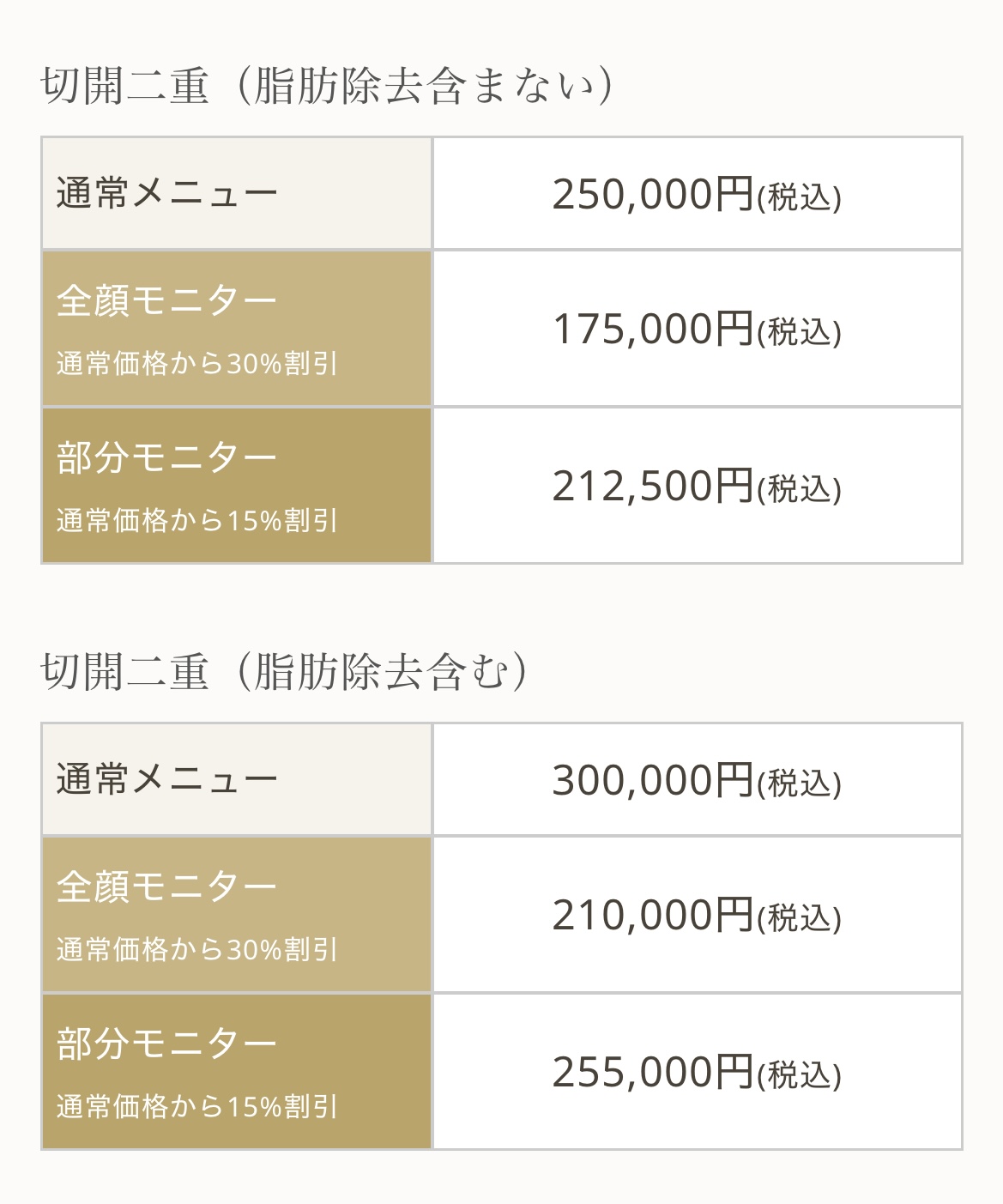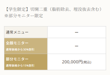 | 通院の有無 | ・入院の必要はありません ・抜糸が必要な場合は1週間後にご来院いただきます ・モニター様は術後の撮影のためにご来院いただきます |