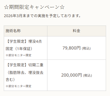 | リスク・副作用 | 左右差、腫れ、内出血、感覚鈍麻、傷跡、瘢痕化、ケロイド、感染症、血腫、神経損傷、皮膚壊死、アレルギー反応 |